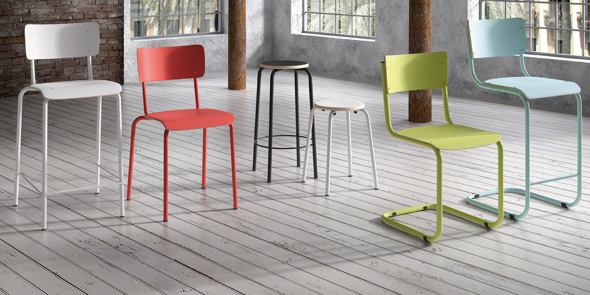 Ensemble stoelen College en Vintage, barkukken BarCollege, BarTabCollege, TabCollege en BarVintage